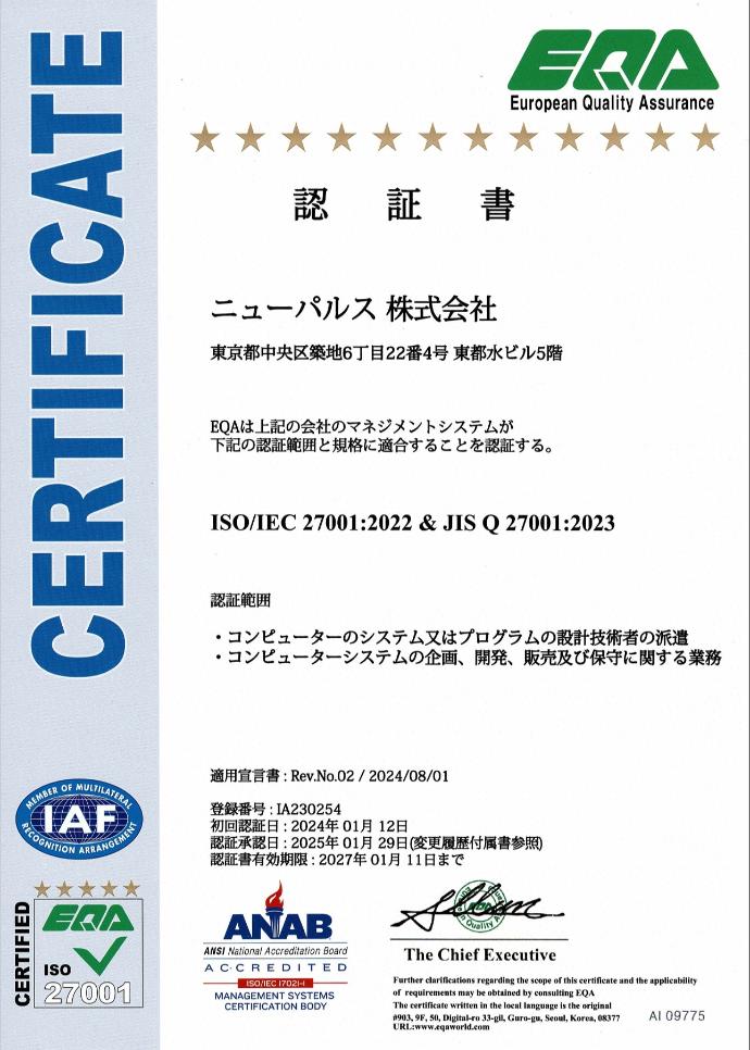 ニューパルス株式会社のWebサイトをご覧いただき、誠にありがとうございます。今後とも、お客様のビジネスを成功に導くため、最善を尽くしてまいりますので、よろしくお願い申し上げます。